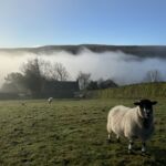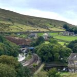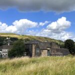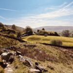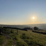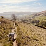 My lovely dog Bonnie, sadly no longer with us, surveying Marsden from above Upper Dirker