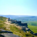 A group of walkers out with Marsden Walkers are Welcome, heading around ‘Top Pond’ towards Piper Stones.